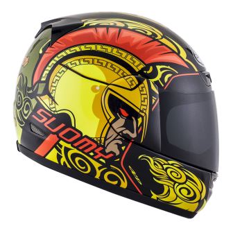 Capacete com calote em material tri-composito (uma combinação de Kevlar, carbono, fibra de vidro e resinas), moldados à mão usando novas tecnologias, que prevêem o uso de resinas vinilester.