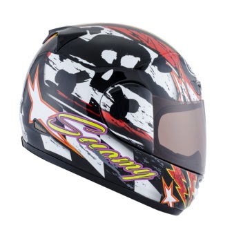 Capacete com calote em material tri-composito (uma combinação de Kevlar, carbono, fibra de vidro e resinas), moldados à mão usando novas tecnologias, que prevêem o uso de resinas vinilester.